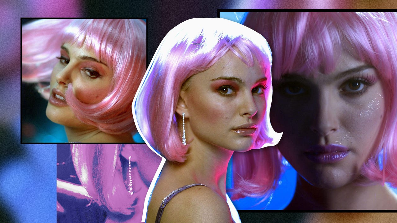 The pink wig is another little film love letter to Natalie Portman in Mike Nichols’s Closer, and Scarlett Johansen in Sofia Coppola’s Lost in Translation.